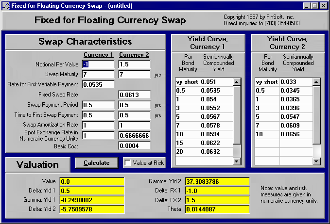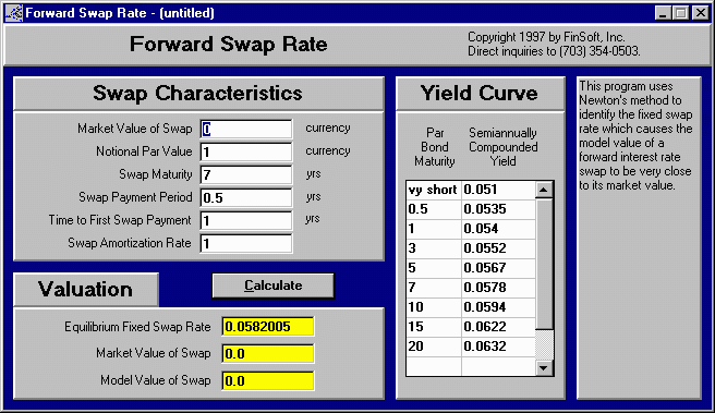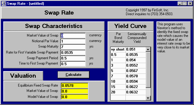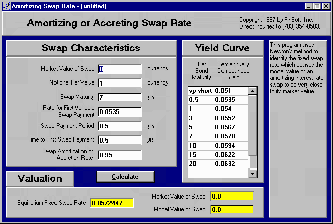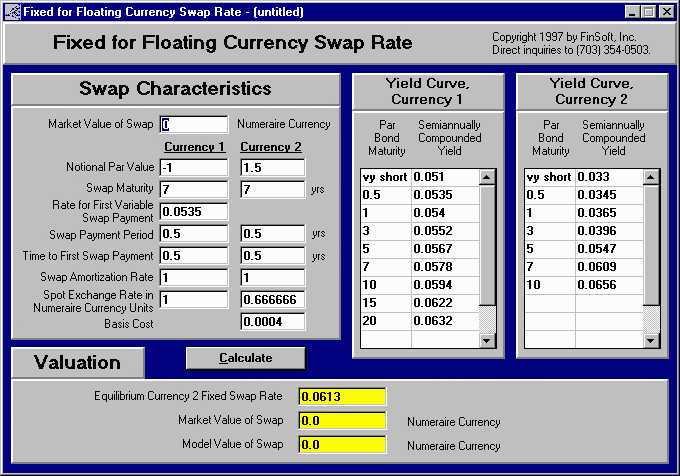 Equilibrium Fixed Swap Rate; Market and Model Values of Swap |