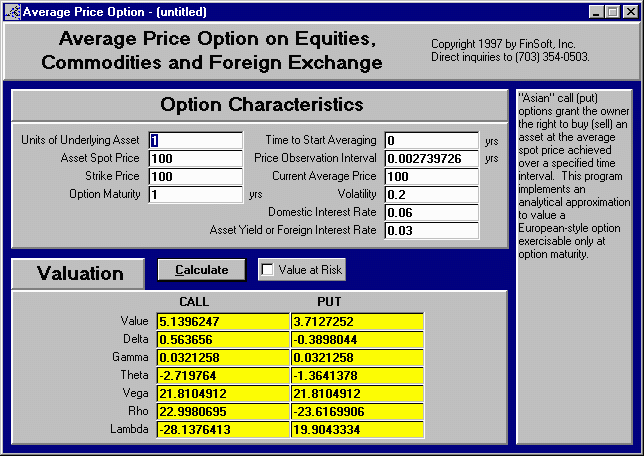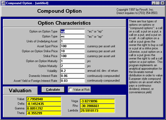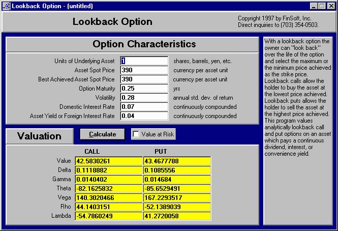 Value; Delta; Gamma; Theta; Vega; Rho; Lambda |