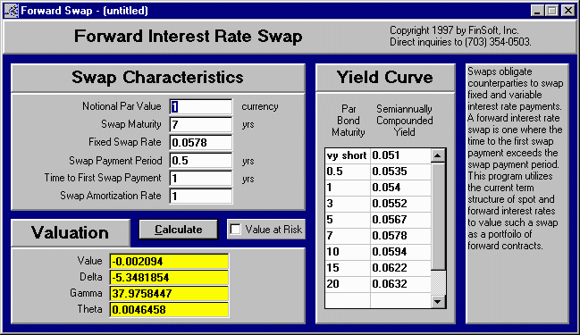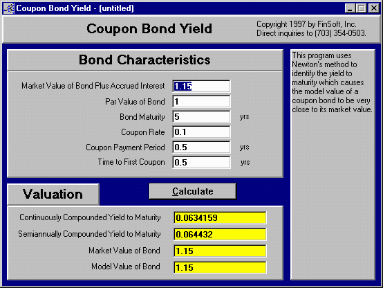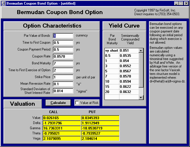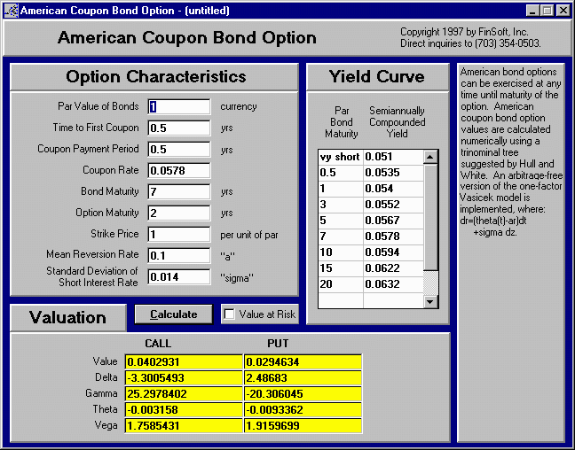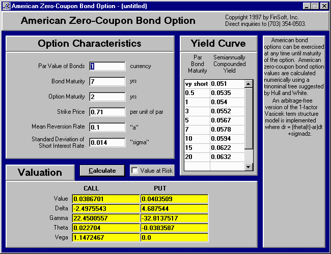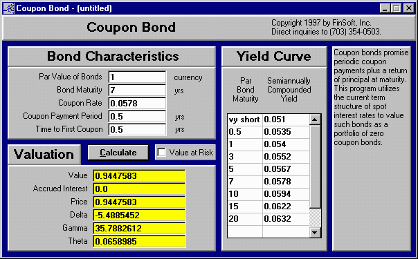 Value; Continuously Compounded Yield; Delta; Gamma; Theta |