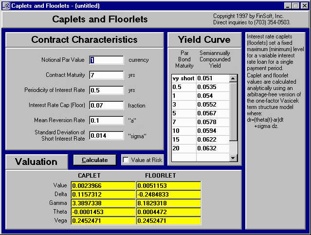Value, Delta, Gamma, Theta, and Vega computed for both Cap and Floor |